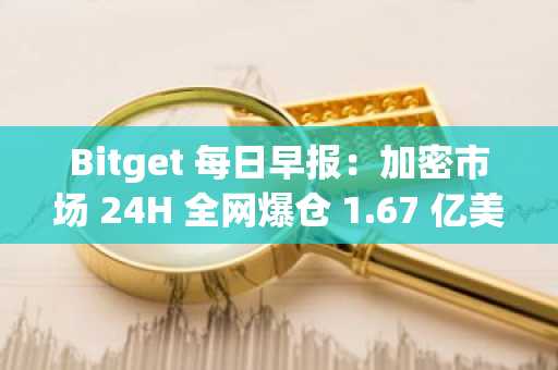 1、过去24小时加密货币市场全网爆仓1.67亿美元,其中空单爆仓0.99亿美元。BTC爆仓总金额0.72亿美元,ETH爆仓总金额0.26亿美元。