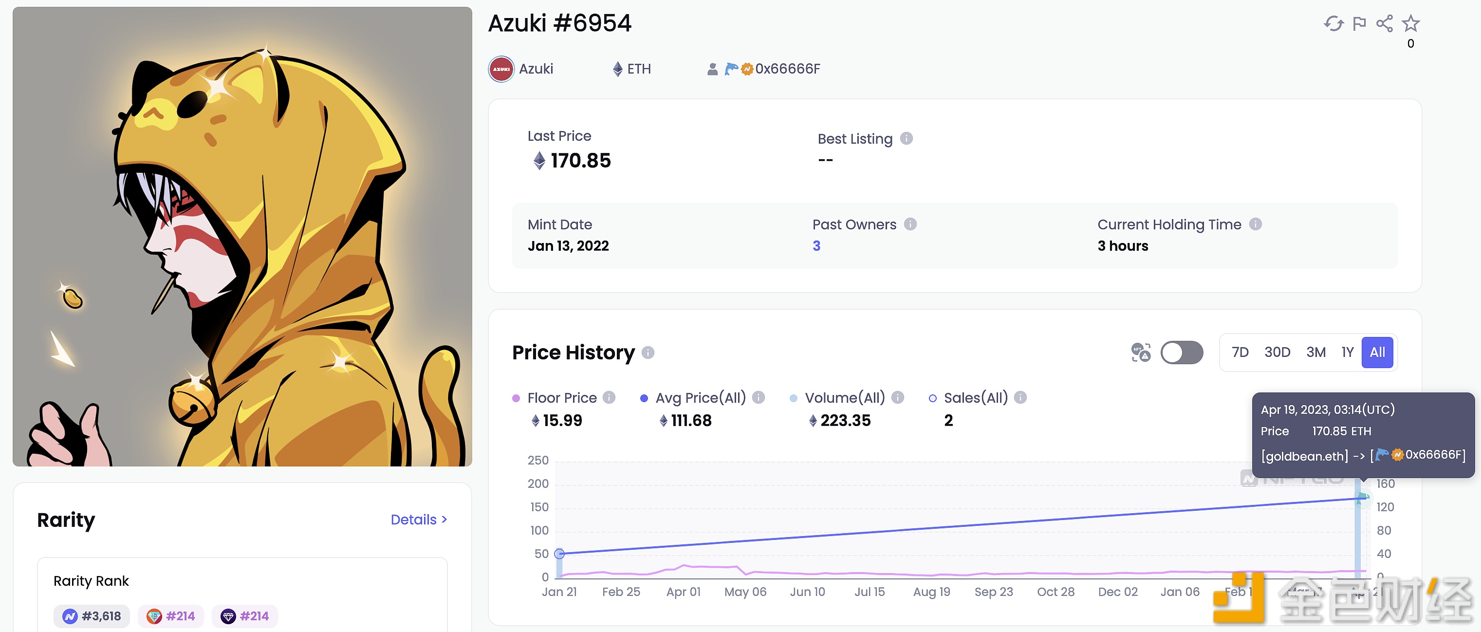 数据显示,Azuki #6954以170.85ETH的价格成交。