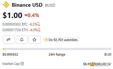 据Coingecko最新数据显示,Paxos发行的美元稳定币BUSD市值已跌破70亿美元,本文撰写时为6,955,504,645美元。历史数据显示,BUSD市值于3月3日跌破100亿美元,3月5日跌破90亿美元,3月27日跌破80亿美元,这意味着BUSD市值在过去一个多月时间内已缩水超30%。