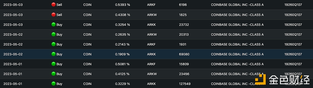 数据显示,5月1日至今,ARK方舟基金累计增持273849股Coinbase股票(COIN),按当前价计算,价值约1353万美元。截止发稿,COIN收盘报49.38美元。
