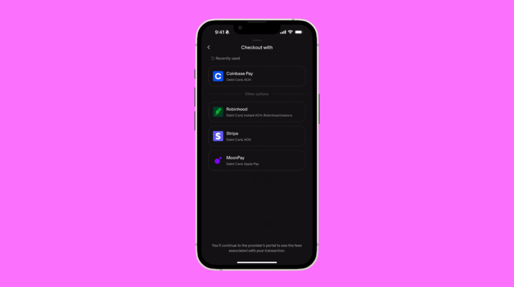 目前,Robinhood Connect已在Uniswap App上对仅限美国地区的用户开放,成为Uniswap上购买加密货币的第四个支付服务提供商,其他包括Coinbase Pay、Stripe、Moonpay。