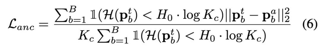 同时,作者也收获了另一个启示,无监督领域对齐的成功是基于两个领域分布相对高重叠率的假设。因此,作者仅调整了 BN 统计量的冻结源域模型来对教师模型进行正则化,避免教师模型的预测分布偏离源模型的预测分布太远(这破坏了之前的两者分布高重合率的经验观测)。大量实验证明,本文中的发现与创新是正确的且鲁棒的。以下是锚定损失的表达式: