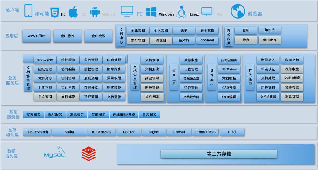 ▲ 金山文档中心应用架构图,图源“龙芯中科”公众号 1、文档存储管理服务:搭建文档数据资产管理中心,避免终端文件损坏造成损失