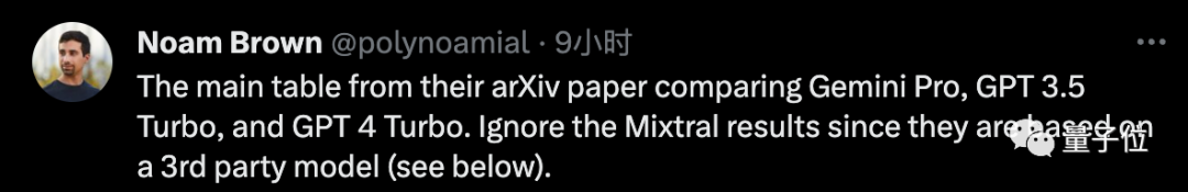 不过,强化学习专家Noam Brown认为可以不考虑Mixtral的结果,因为它使用的是第三方API而不是官方实现