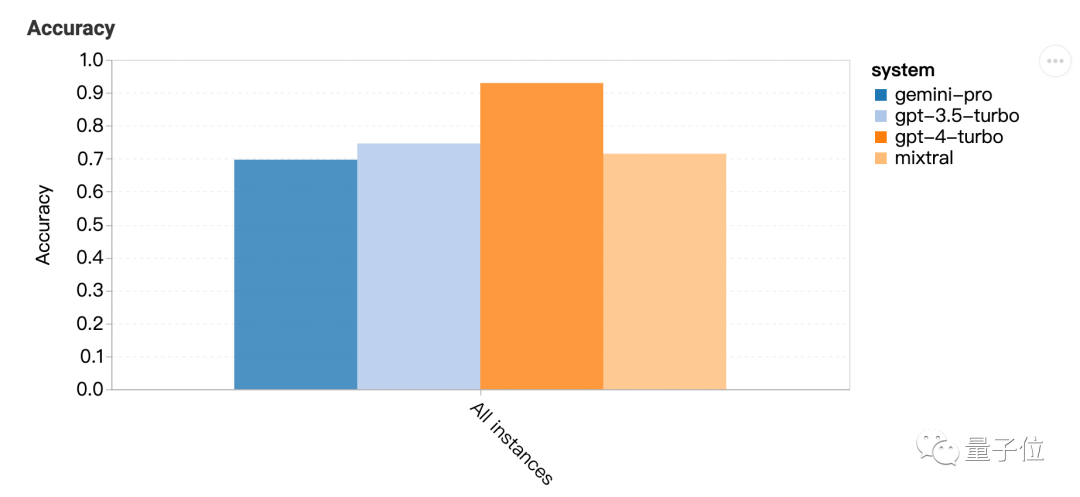 一句话结果:Gemini Pro版本接近但略逊于GPT-3.5 Turbo,GPT-4还是遥遥领先。