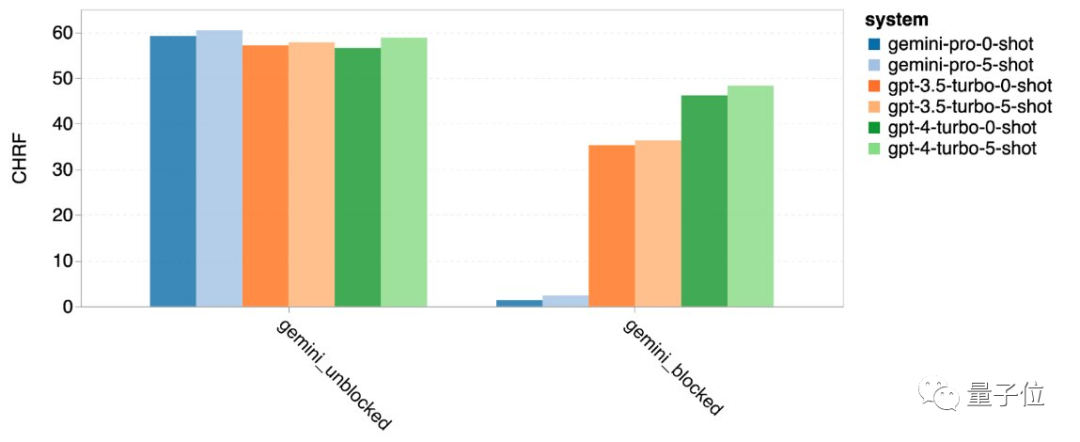 在翻译任务中,Gemini拒绝回答了12种类型的问题,但只要回答了的翻译质量都非常出色,整体表现超过了GPT-4