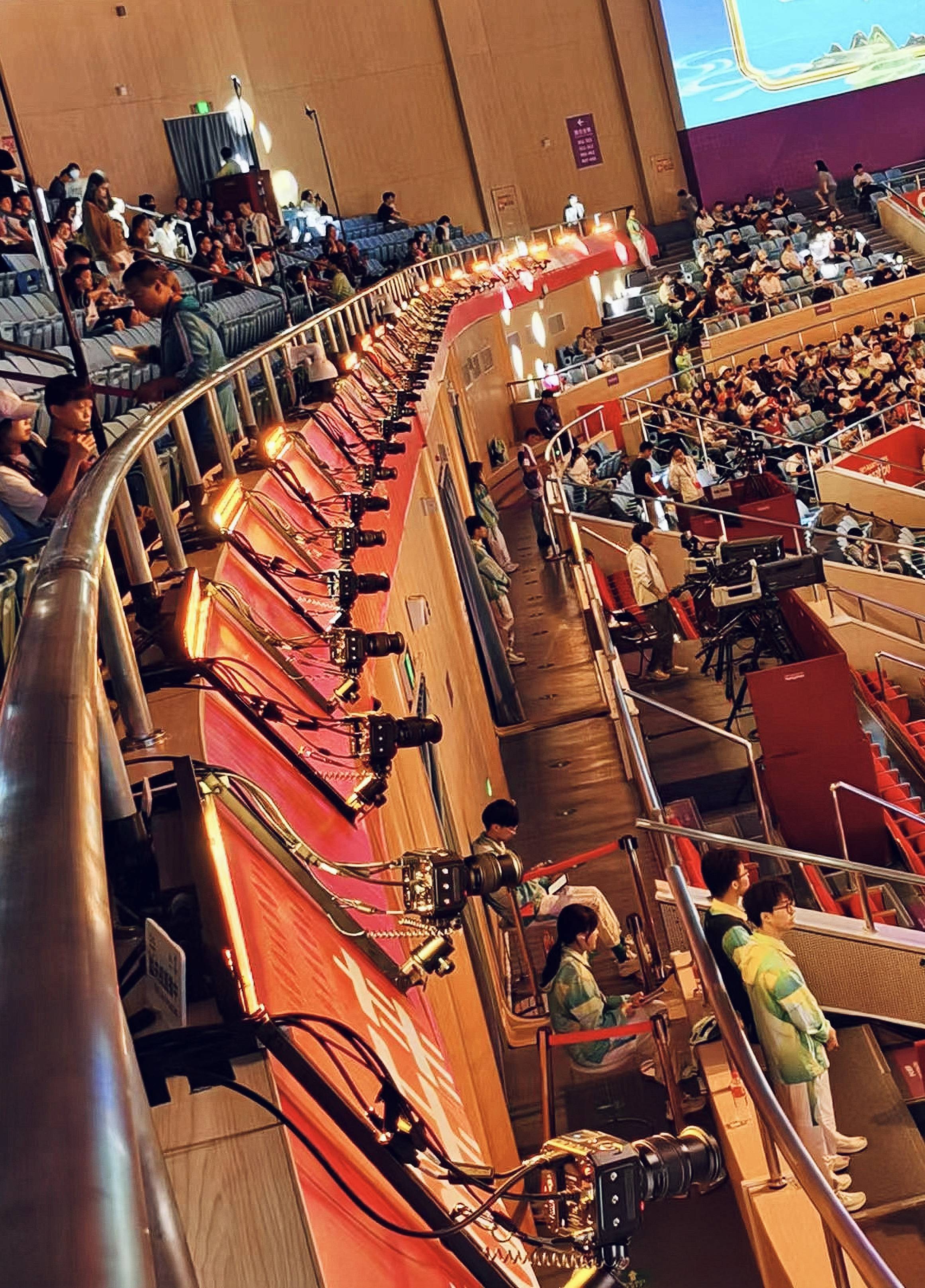 其次,机器部署规模小、位置灵活。以往普通技术需要在场内布置上百个相机,而六自由度技术仅需30余台相机即可。在亚运会击剑馆中,快手结合场地实际情况,将相机部署在观众席二层,通过3D虚拟运镜技术,可以同时把“子弹时间”覆盖至主赛道以及两个分赛道,在保障了任意方向的观众视线的同时,避免了对场馆内其他运行功能造成影响。