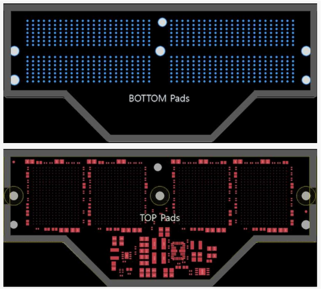 据悉,LPCAMM内存是三星在LPDDR内存基础上进行改进的一项技术创新。尽管名称与CAMM相似,但实际上它们在物理和电气方面都不兼容。这一内存模组的设计独特之处在于,它将四颗32位LPDDR5X内存颗粒直接封装在压缩连接器上,实现了128位内存总线的使用。通过一份焊盘图表可以看出,LPCAMM内存的触点位于PCB板的背面,与内存颗粒非常接近,从而极大地缩短了信号传输距离。