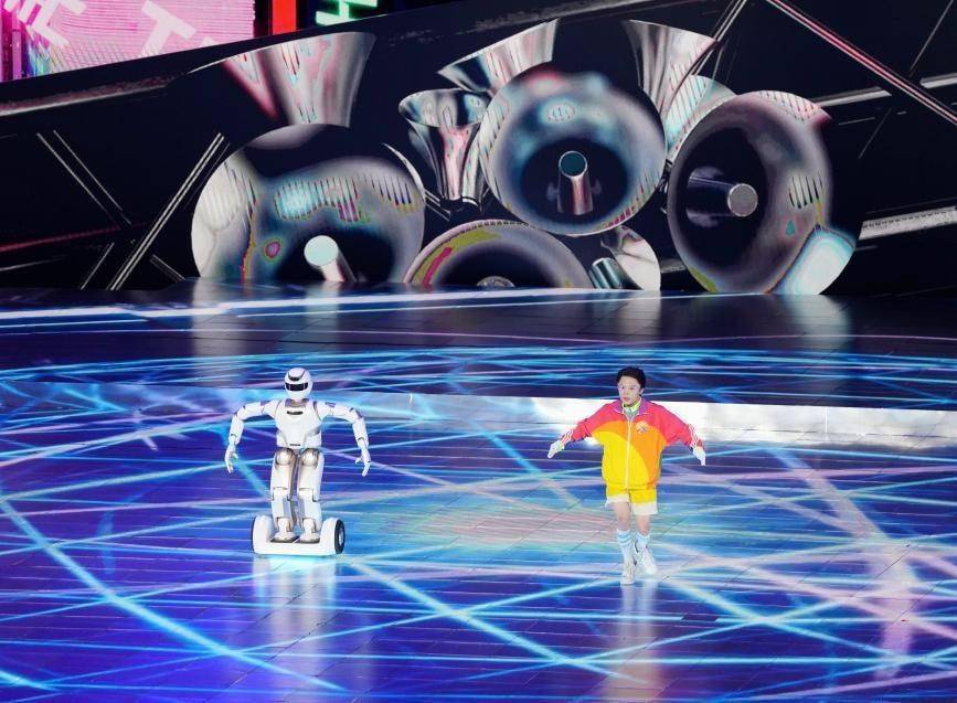 在大运会闭幕式上,优必选的大型人形机器人Walker X骑平衡车与舞蹈演员进行了一场激动人心的舞蹈对决