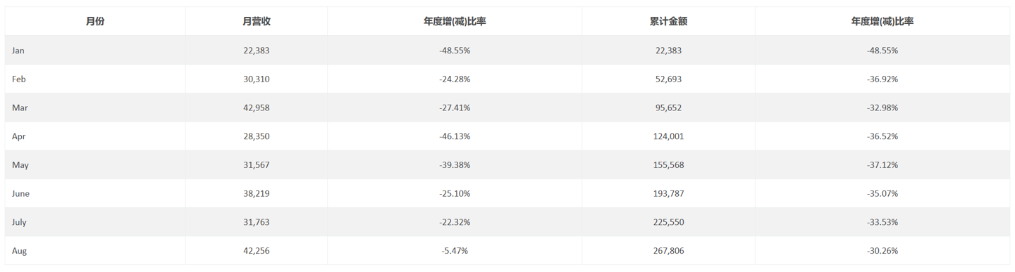 今年1-8月,联发科的累计营收为2678.06亿元新台币(约合613.28亿元人民币),同比下降30.26%