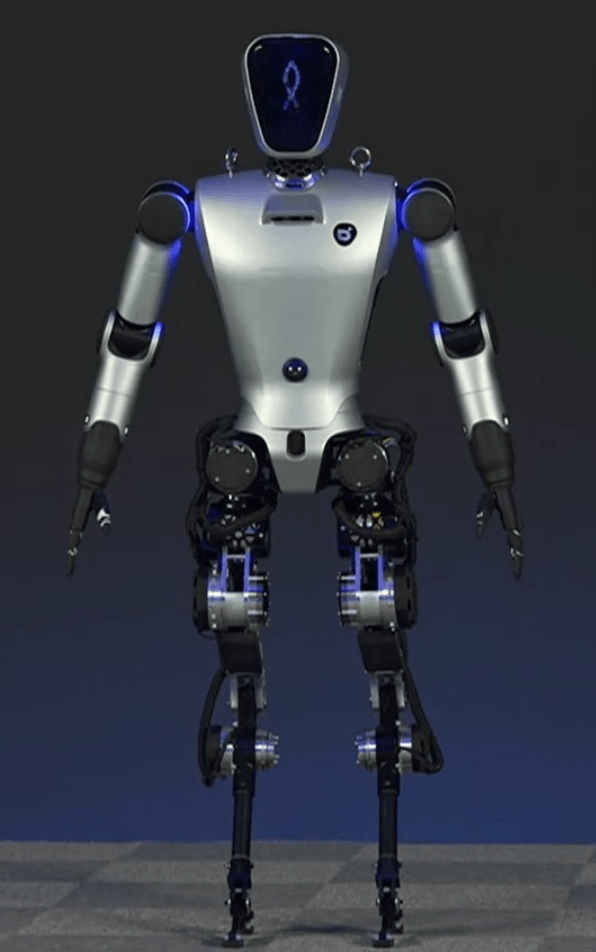 这个机器人自称拥有超过49个自由度,整机能承重80kg,单臂最大负载为5kg,关节电机的峰值扭矩为350N·m,并配备有水冷散热系统