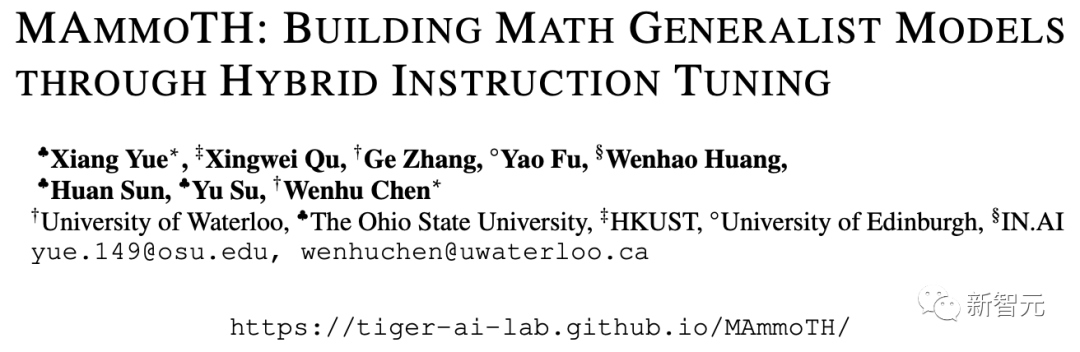 最近,滑铁卢大学、俄亥俄州立大学、香港科技大学、爱丁堡大学的研究人员联合开源了一个专为「通用数学问题」定制的大模型MAmmoTH和一个指令调优数据集MathInstruct.