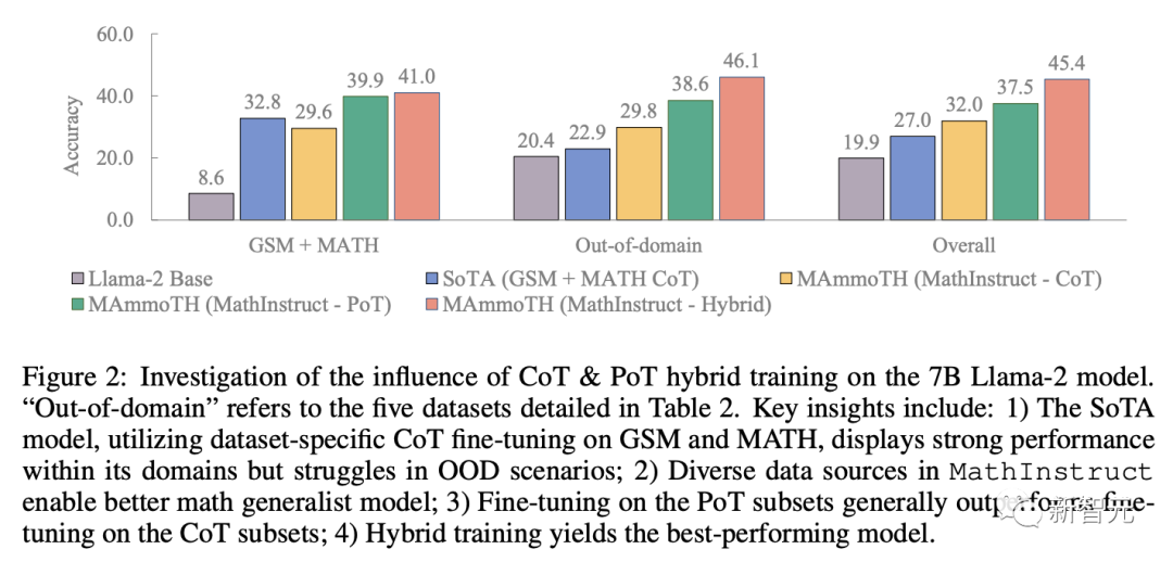 MAmmoTH-7B在MMLU-Math上的CoT性能提升了9%,这一点需要特别注意。这个提升包含了许多在训练数据集中没有涵盖的主题