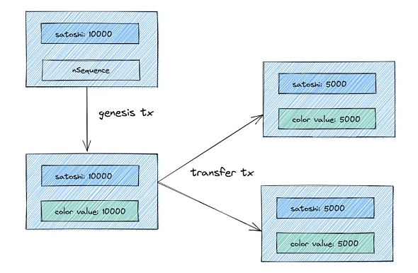 早期的染色币,基本使用脚本的OP_RETURN操作码来存储关于资产的元数据,在SegWit与Taproot升级后,新的衍生协议有了更多的选择。